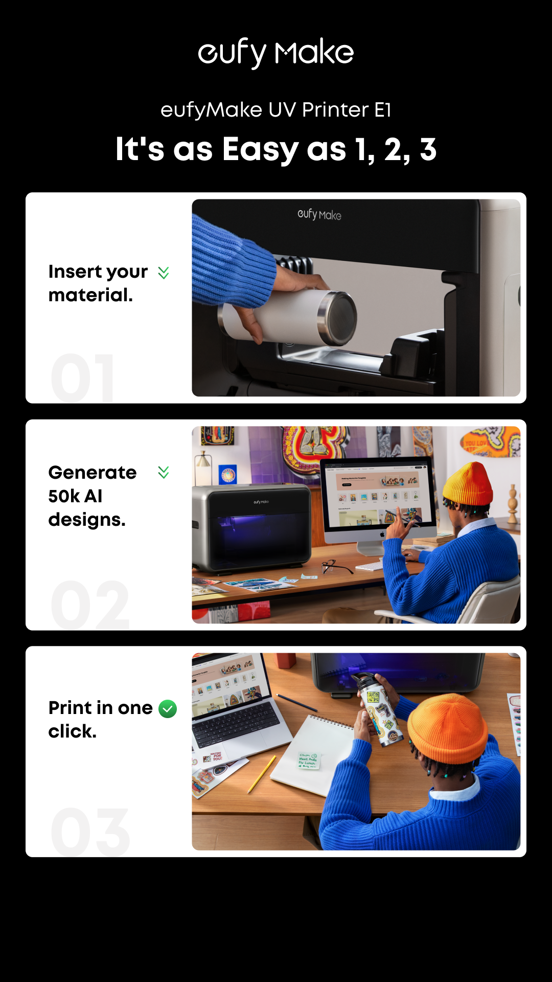 The eufyMake E1 printer is revolutionizing what makers can create; delivering vivid color in high definition, with added textured realism in every print.