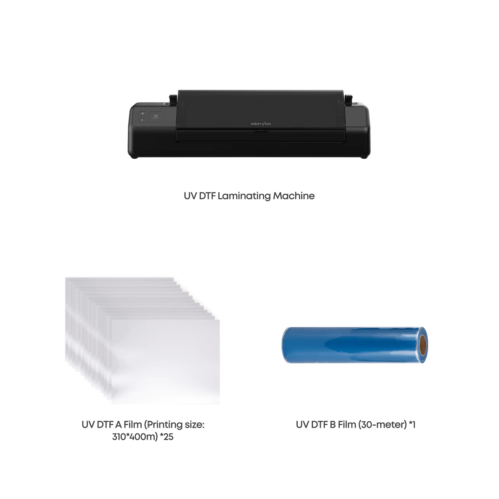 Modular accessories include a laminating system for creating custom stickers, and a self-leveling rotary tool for printing directly onto glasses, mugs and tumblers.